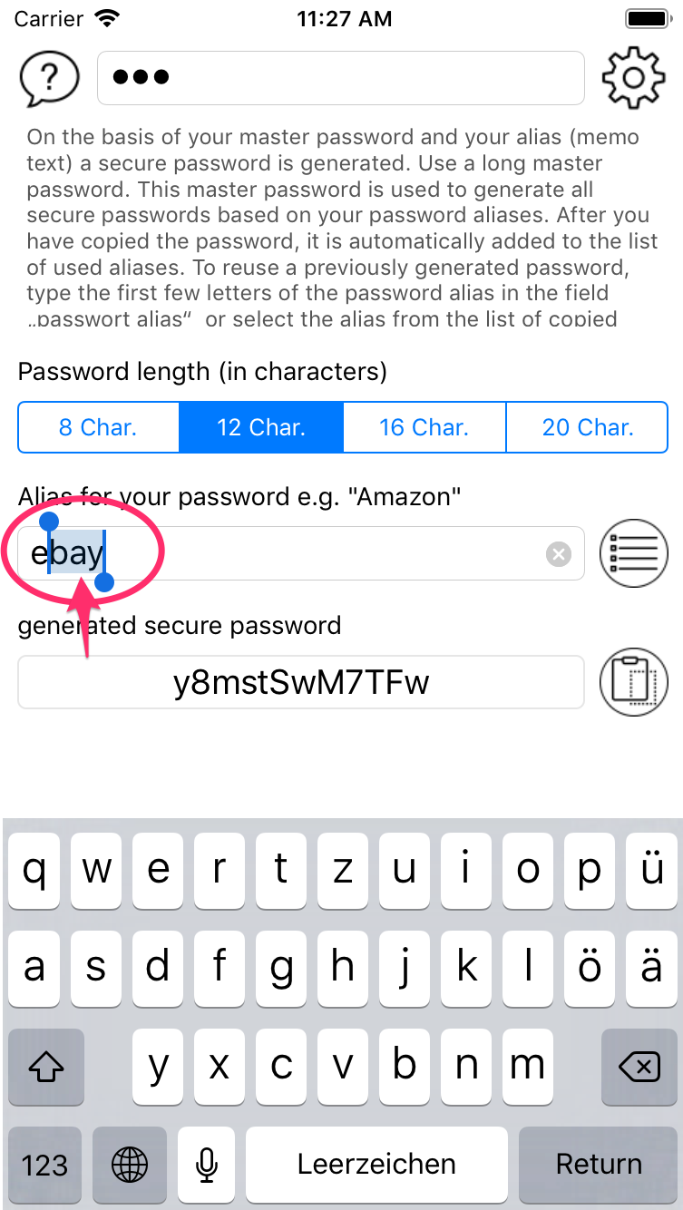 | 4. | copy the password .... now the password to can be "paste" in any other app ... e.g. in Ebay.... |