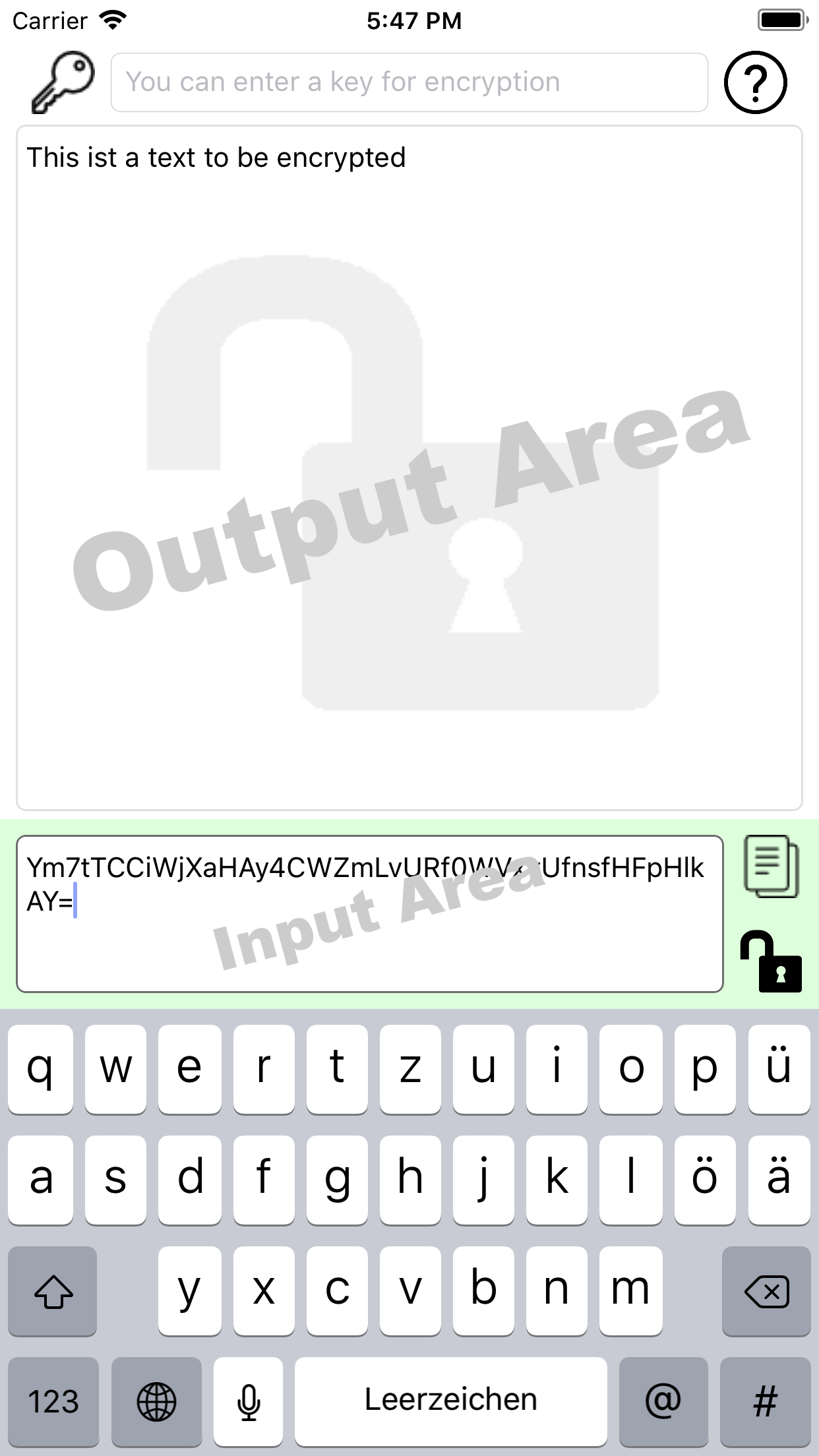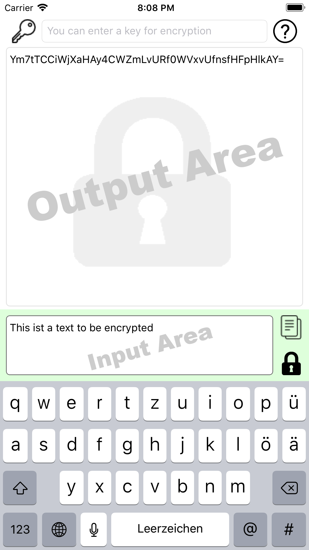 To transfer the encrypted text to another app, tap the icon, that copies the encrypted text and it can be pasted into any other app.